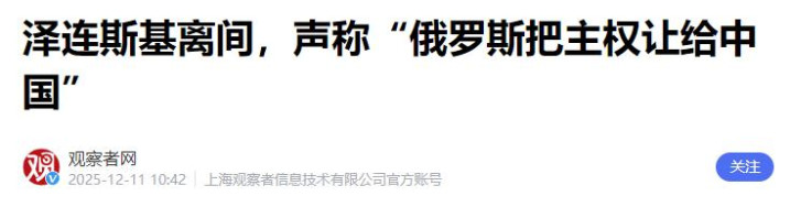 最近泽连斯基的发言堪称“语不惊人死不休”,一句“俄罗斯历史上从未如此大幅度向中国让渡主权”,直接把矛头对准中俄关系,明眼人都能看出这是在故意挑拨。